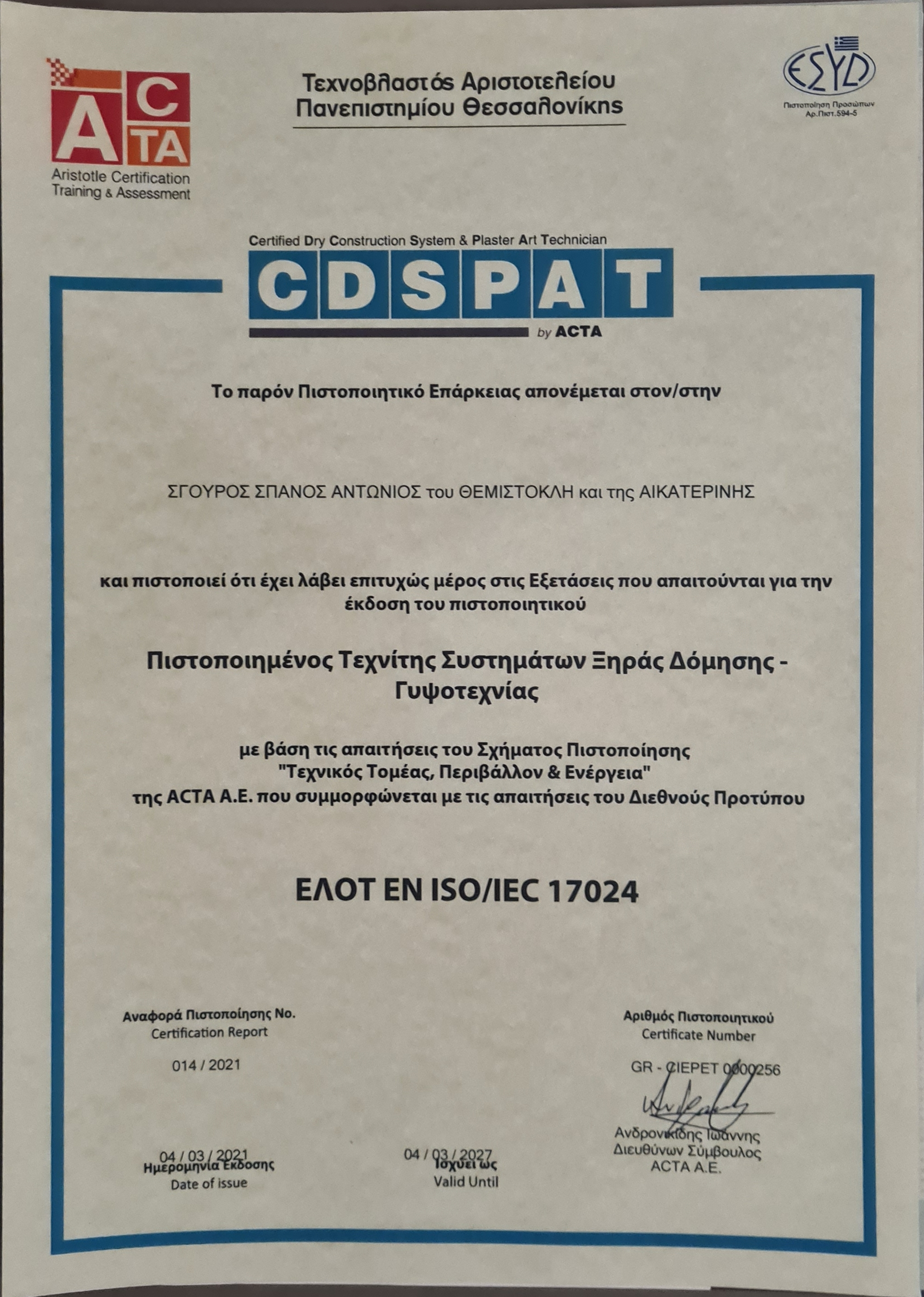 Υπηρεσίες από ΣΠΑΝΟΣ ΑΝΤΩΝΙΟΣ: